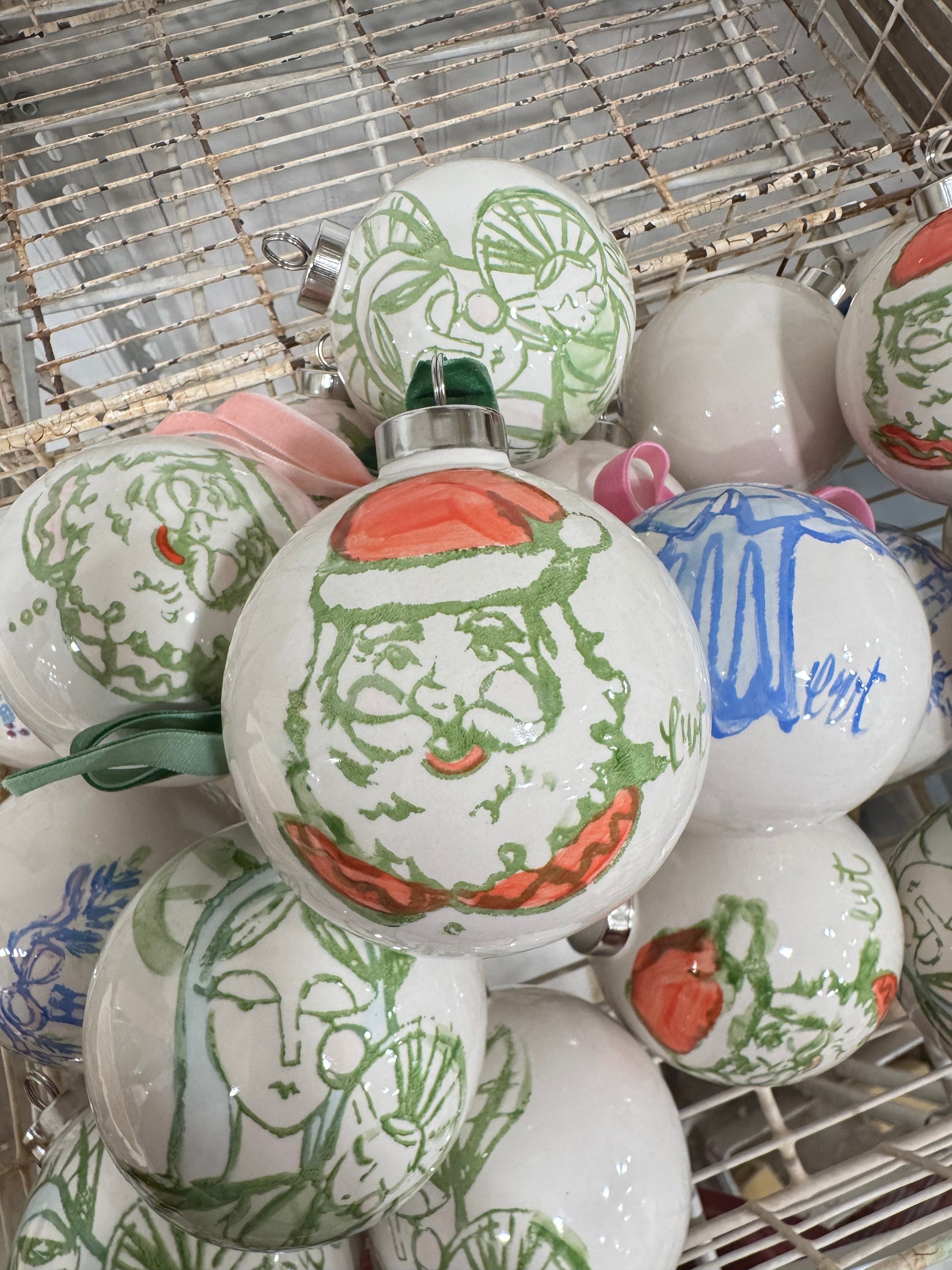Hand painted by Laura W Taylor on a ceramic ball ornament. Slight variations on each ornament.