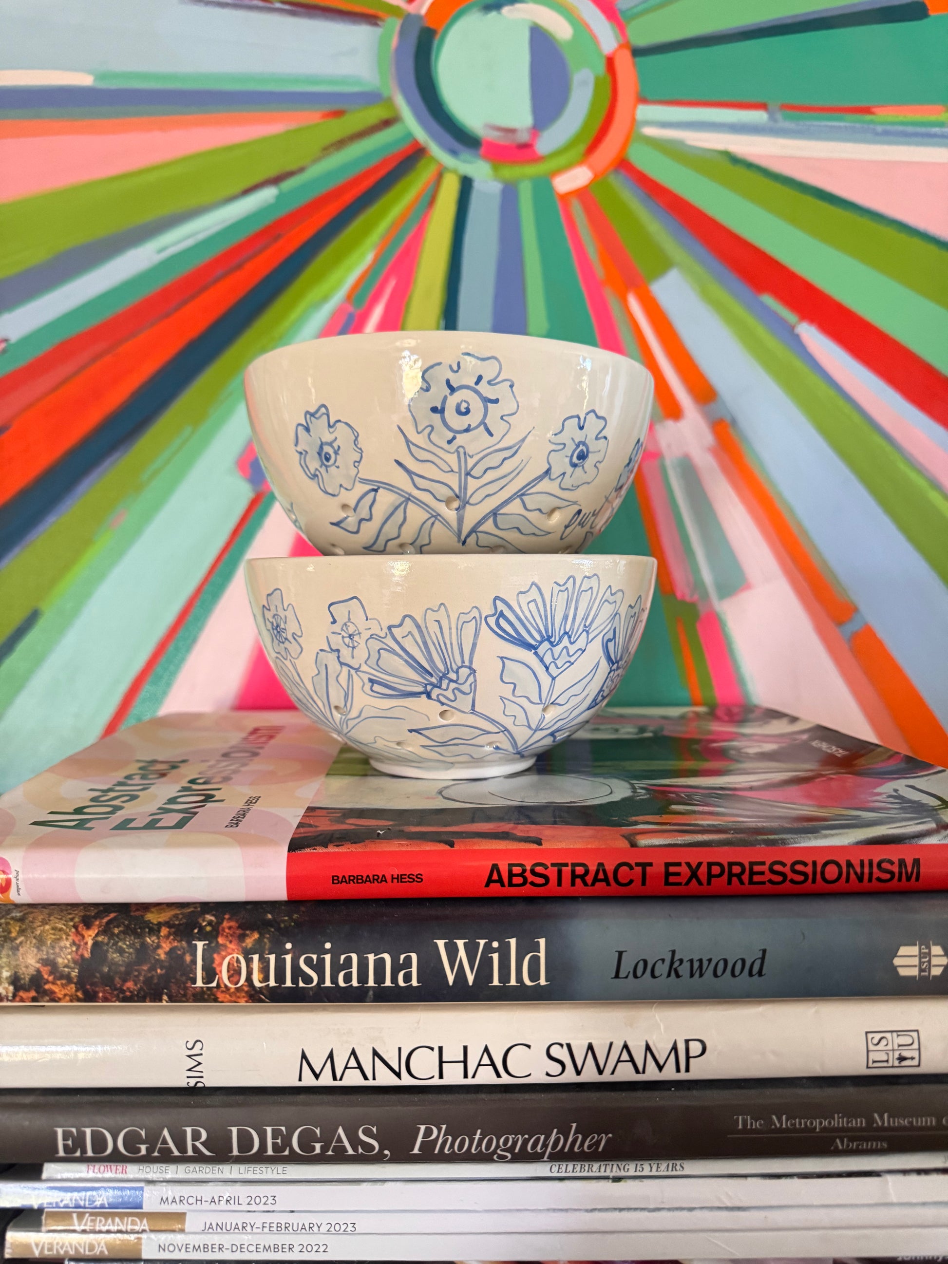 Handpainted by Laura W Taylor - a crowd favorite since 2020! We use them daily to wash fruit, store in the fridge, and pull out for serving. Also perfect for collecting veggies from your garden or eggs from your coop!